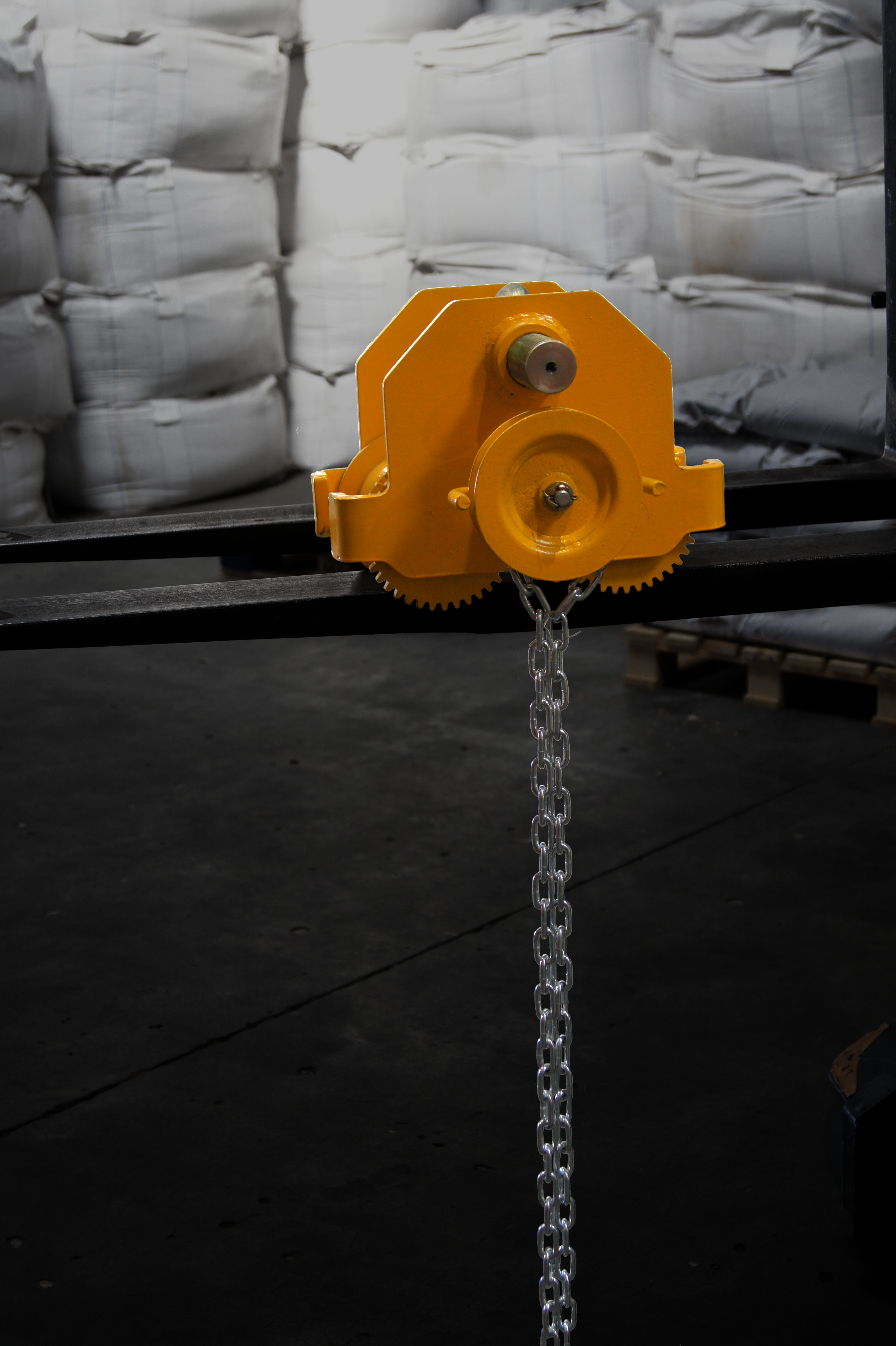Vi har både løbekat til skub og kæde samt bjælkeklo til montering af taljer.